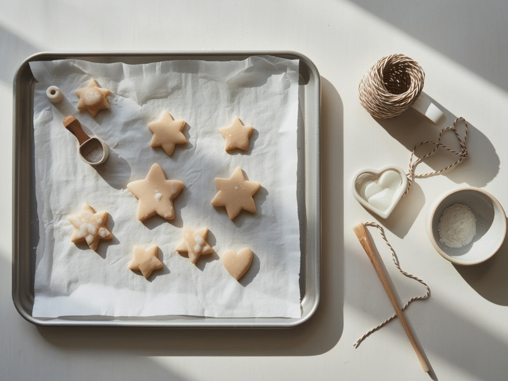 Salt dough is easy and low cost. Mix flour, salt, and water to make a dough, cut shapes, and bake. Paint or leave natural. Here is a simple how to from a well known source: BBC Good Food salt dough ornaments. Add ribbon and hang. Make a new set each year, but also keep a few classics to reuse.