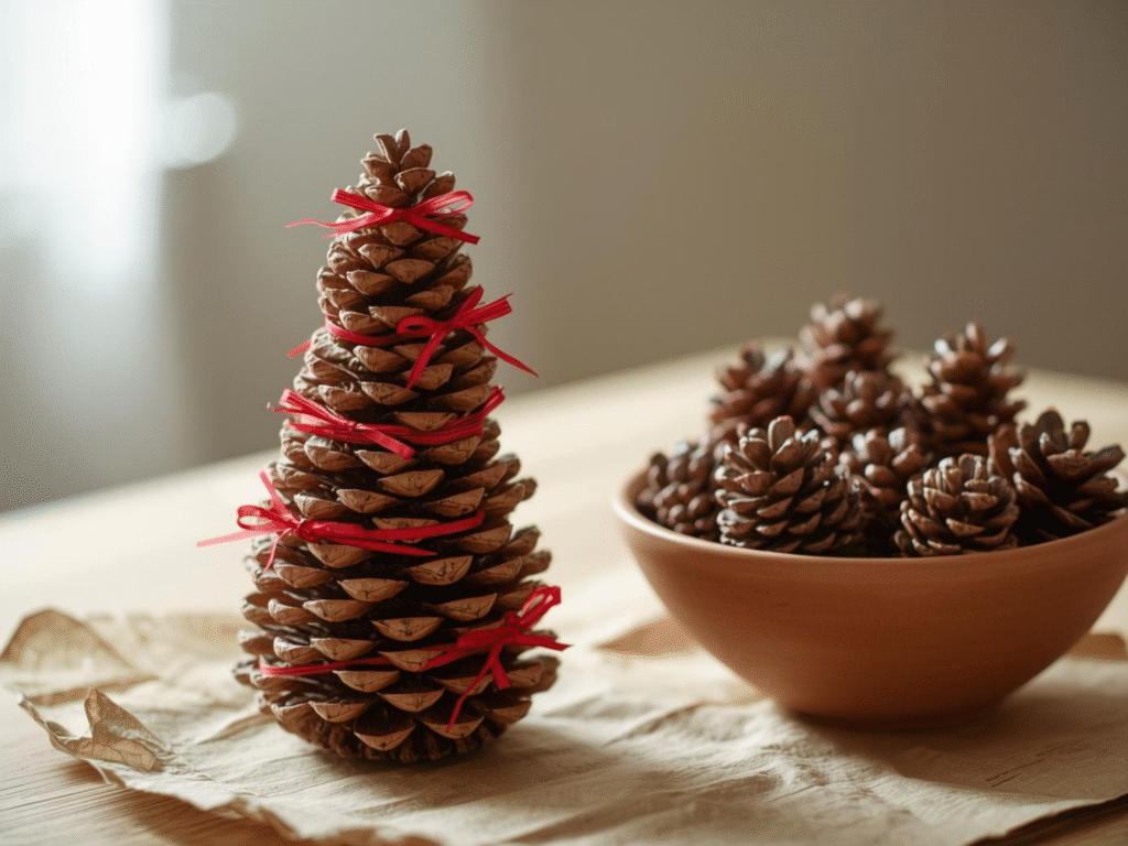 Collect pinecones, tie on short ribbon bows, and place pinecones in a bowl or glue to a cardboard cone to make a mini tree. For guidance on collecting natural materials responsibly, see the National Park Service tips on Leave No Trace basics. If you gather on private land, always ask first.