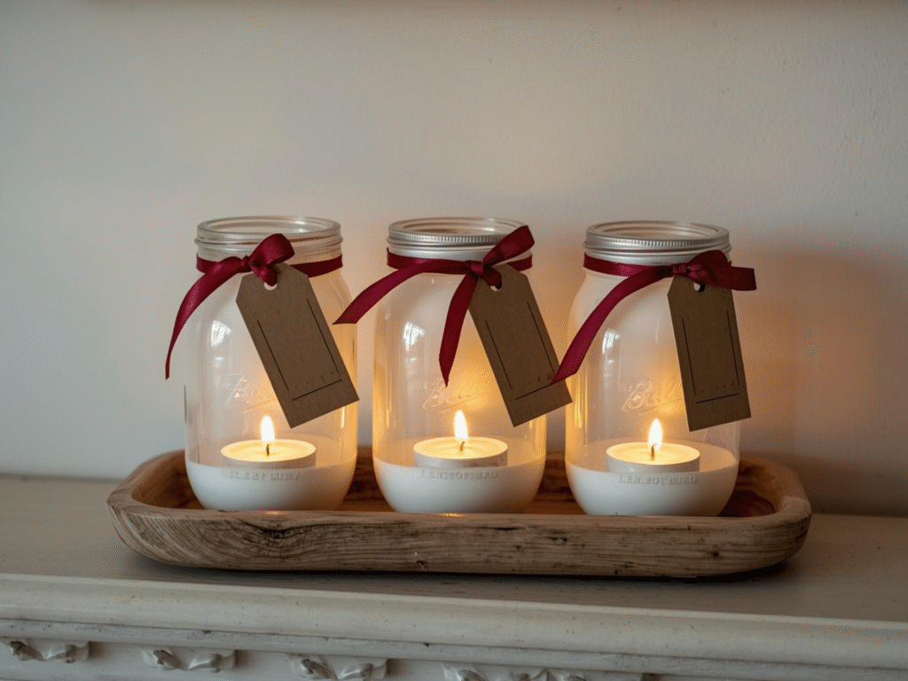 Wrap jars with fabric scraps and tie a bow. Add a few branches or spring flowers from the yard. If you need advice on keeping cut branches fresh, you can read a short explainer on Royal Horticultural Society basic cut flower care.