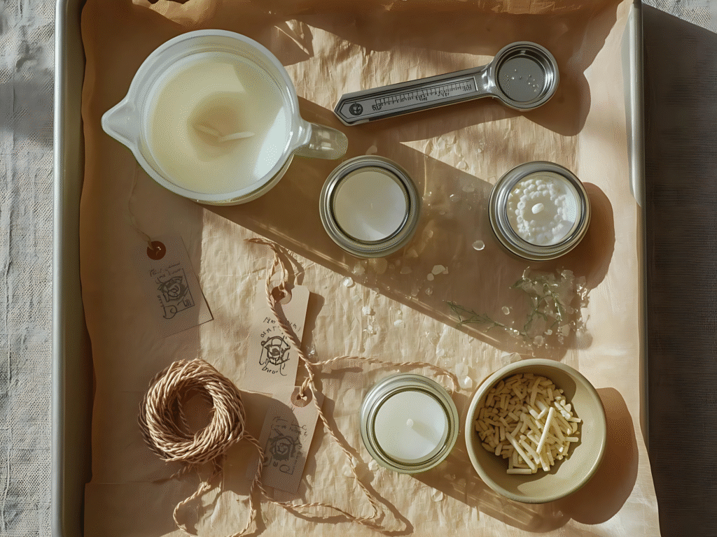 Steps: melt wax, add fragrance, set the wick, and pour into jars. A simple starter guide from The Spruce Crafts walks you through every step.