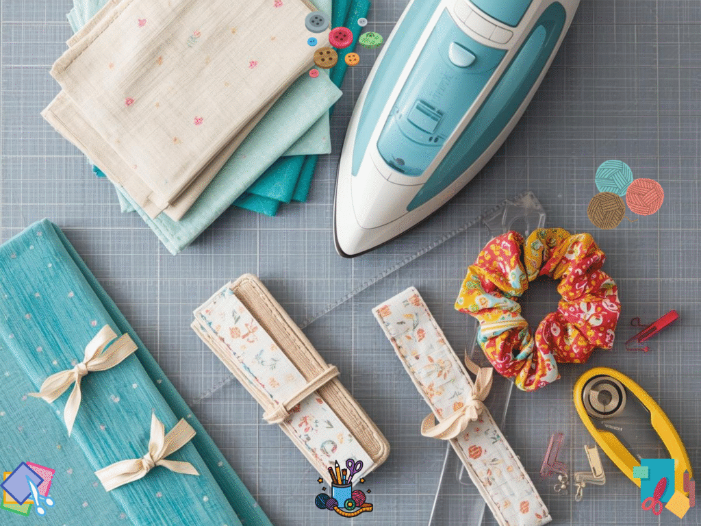 Make this set: Bookmark, key fob, scrunchie, mini pouch, and a sachet.