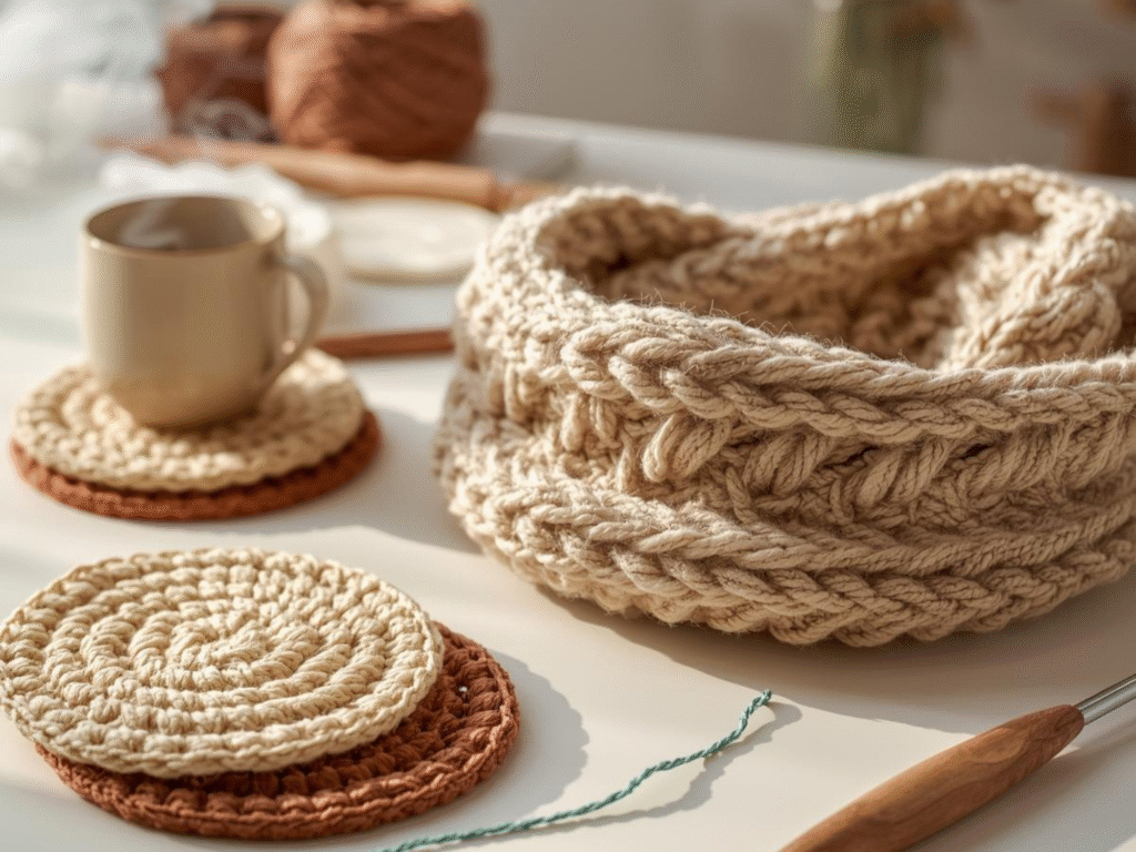 - Chunky yarn, large hooks, or simple repeats work up fast