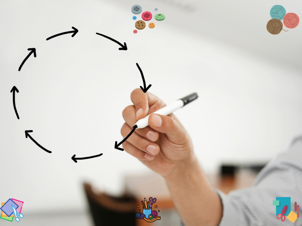 Picture your work moving like a loop. Materials come in. You create. You finish. You pack. You ship. Then you restock. Draw this loop on paper and mark each stop in your room. Keep the path clear so you do not trip over bins or boxes. When I map the path first, my space feels bigger and calmer.