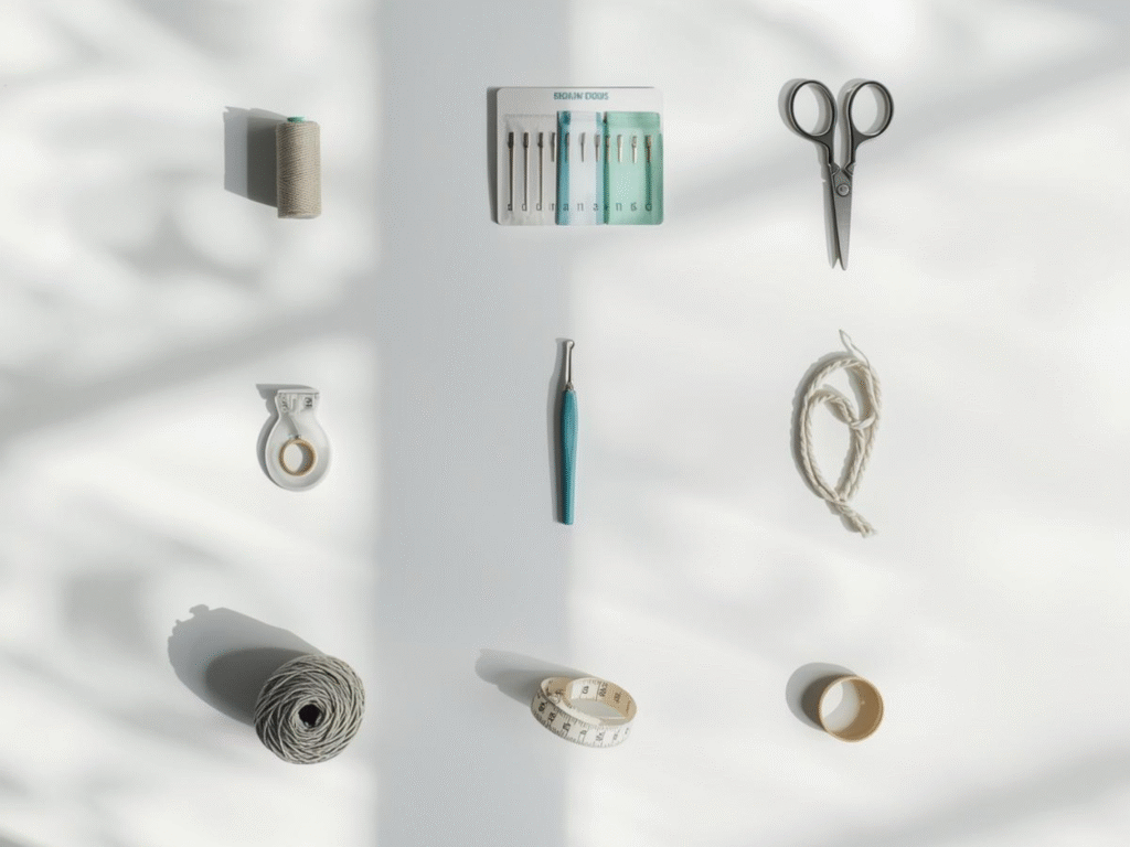 Tip: pick up items over time. Start with needles, thread, scissors, tape, and a seam ripper. Then add the crochet hook and yarn. Add the glue gun last if your first projects need it.